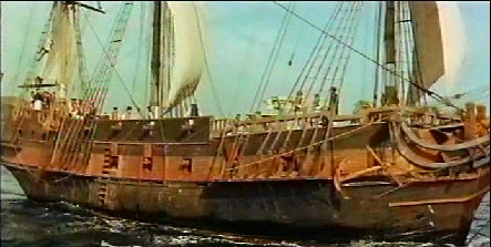 | Farbgebung Schaut man sich an Nord- oder Ostsee alte Fischerboote an, so fällt auf, dass die Farbgebung eine sehr unwichtige Angelegenheit ist und die Oberfläche ist alles andere als glatt. Es handelt sich bei Schiffen um Transportgeräte und nicht um Autos die besonder schön glänzen sollen. Anbei zwei Bilder von dem Segelschiff aus dem Flilm "Freibeuter der Meere". Interessant ist der Balken, welcher nach einer Instandsetzung nicht gestrichen wurde. Alles in allem eine sehr reudige Kiste. Weniger ist also mehr. |